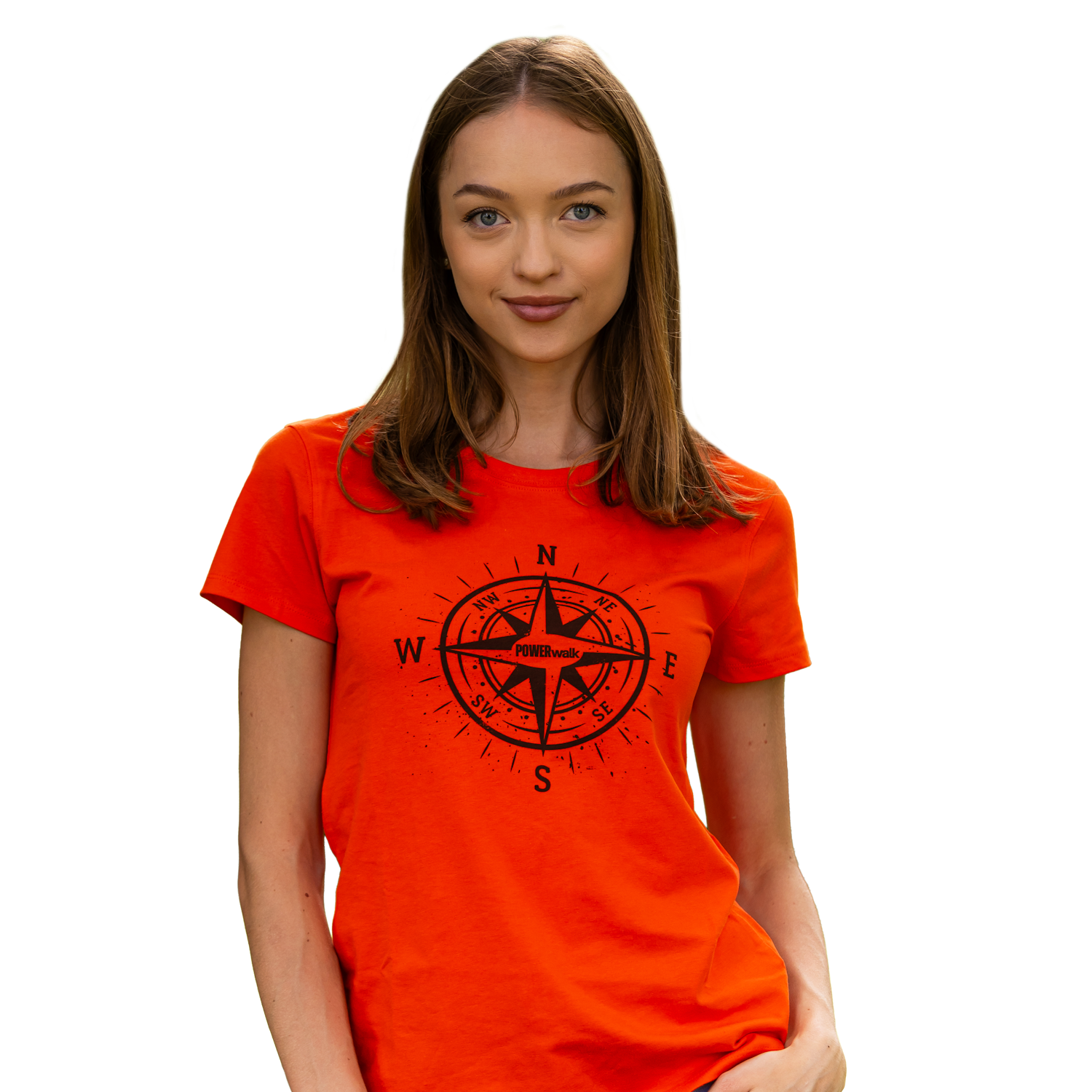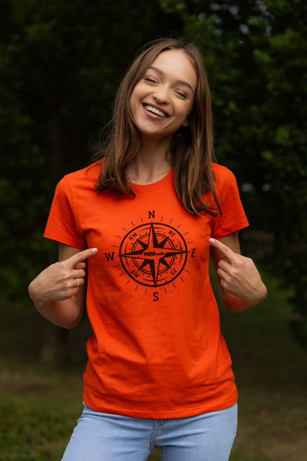 Kompas – pomarańczowa – tu centralnym punktem designu jest grafika kompasu, symbolizująca kierunek, cel i nieustanną podróż. To idealne odzwierciedlenie ducha Power Walk – wyznaczania sobie celów i konsekwentnego dążenia do nich.